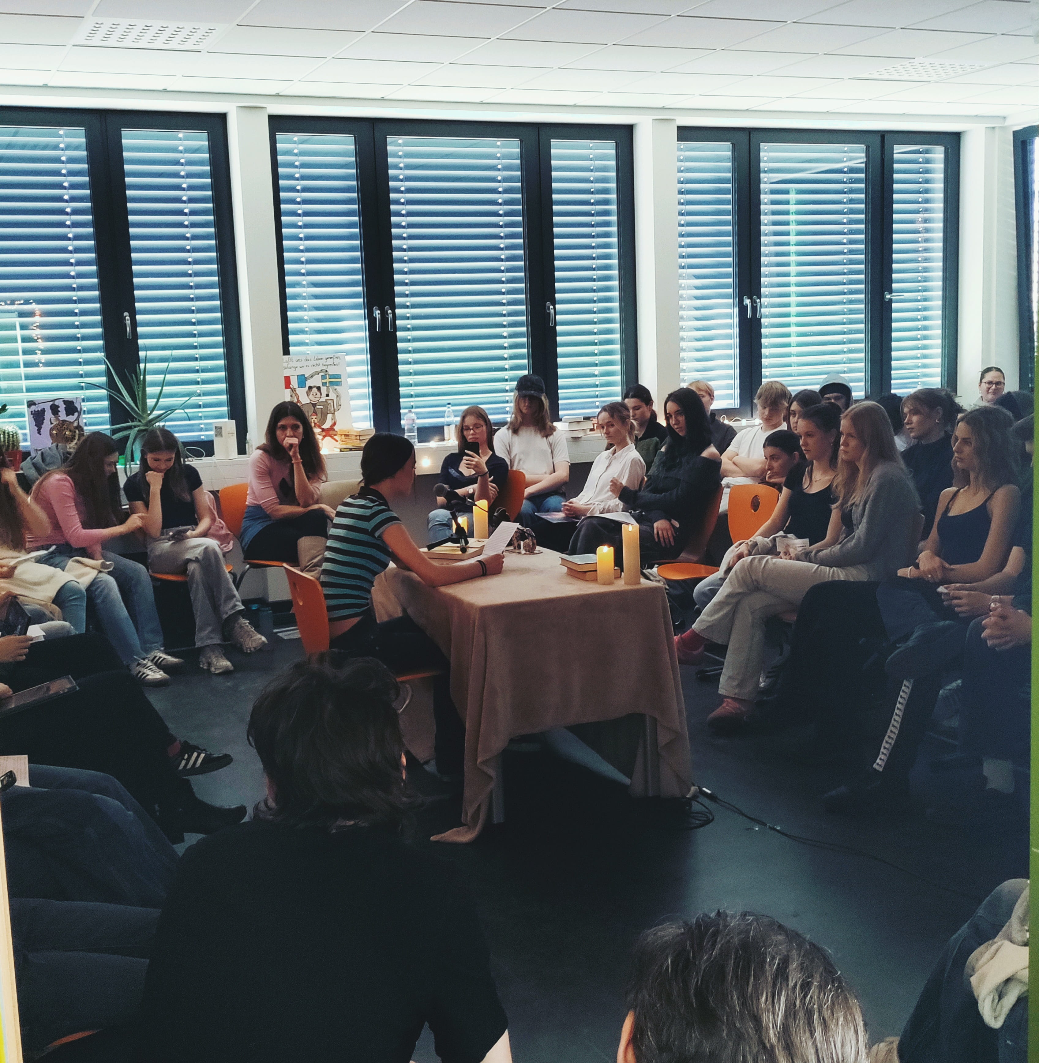 Der Literaturtag war ein gelungenes Fest der Namensgebung unserer Schule und machte Kurt Tucholsky alle Ehre. In verschiedenen Lesungen präsentierten Schülerinnen und Schüler und Profis auf sechs verschiedenen Bühnen eigene Texte und Gedichte und teilten somit auf literarische Weise ihre persönlichen Gedanken und Erfahrungen mit dem Publikum. Musikalisch wurde der Tag durch Musikacts von Schüler*Innen bereichert. Ein weiteres Highlight des Literaturtags waren drei Poetry-Slamerinnen, die Einblicke in ihre Erfahrungen aus der Poetry-Slam-Szene gaben. Vom Anfang bis zum Schluss erzeugten die abwechslungsreichen Beiträge eine schöne Atmosphäre, welche von viel Begeisterung für Sprache, Geschichten und Kreativität geprägt war. Wir danken den Autorinnen Frau Szmania und Frau Mørch sowie den Poetry-Slamerinnen Lucia Lucia, Kirsten Fuchs und Lu Komma Klar.